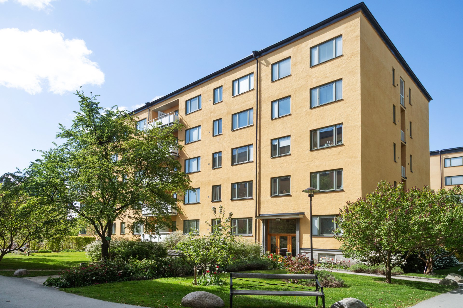 Avgiften är låg och att föreningen, en av Stockholms äldsta, är stabil och välskött ger ett tryggt boende. Dessutom erbjuds praktiska faciliteter såsom hobbyrum, två musikrum, fyra gästlägenheter och hela åtta tvättstugor – varav en i samma port som lägenheten. Den lummiga gårdsmiljön är underbar och här finns odlingslådor, flera sittplatser, större matgrupper för utemiddagar med vänner. Kvarteret präglas av stilren funkisarkitektur från tidigt 1930-talet, och anses ha ett högt kulturhistoriskt värde.